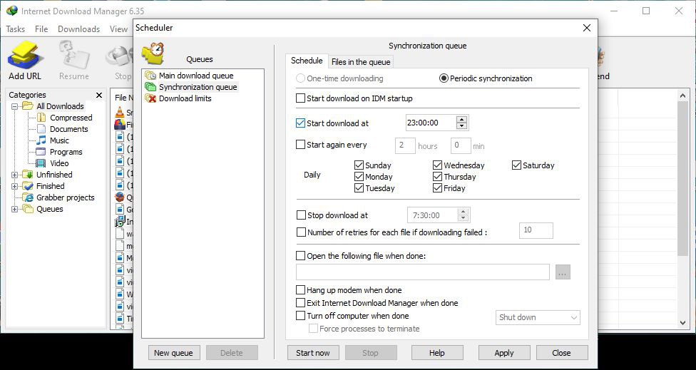6. Built-in Scheduler – Schedule downloads and auto shut down PC upon completion.